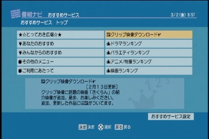 このRDシリーズには映画の予告編や番組紹介などの動画を専用サイトからダウンロードできる「クリップ映像ダウンロード」という機能がある。これを使って約2分の予告編をダウンロードする時間を計測した。