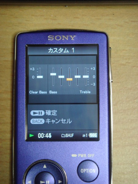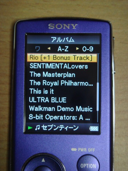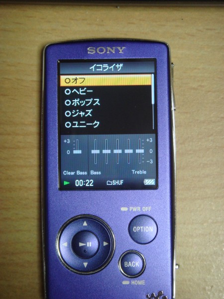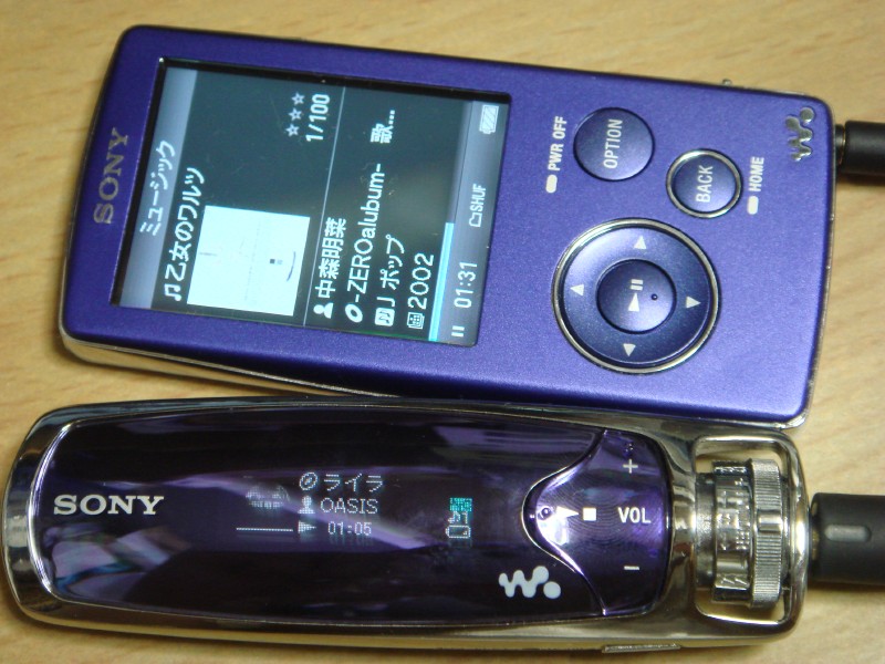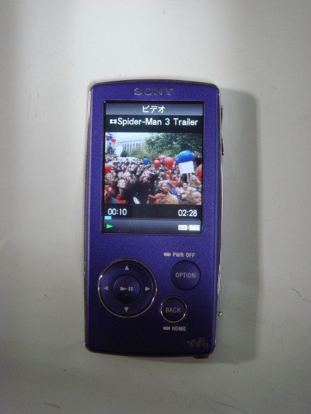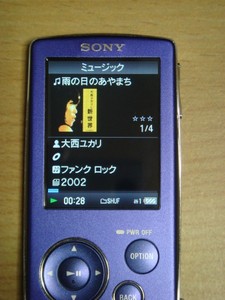 一見するとアップルのiPod nanoに近いスタイルだが、MP3などの圧縮音楽ファイルを高音質で再生するDSEE(高音域補完)機能など“音”にもこだわりを見せている。ボタン類が大きく、操作しやすいのが特徴だ。わかりやすくてスタイリッシュという、ソニーの良い面が前面に出たデザインだ。とりわけ評価したいのが電源ボタン。以前からウォークマンシリーズは電源スイッチが分かりづらいと、感じていたのだが、本機からオプションボタンの長押しという表示が加わった。今までは僕の操作ミスもあり、電源を切り損なってバッテリー切れになってしまうこともたびたびあったのだが、本機ならばとっさに電源を落としたい時にも確実な操作ができる。