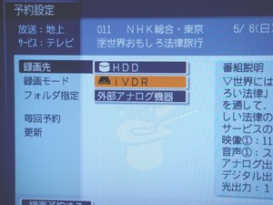 iVDR-Sをあらかじめ本体にセットしておけば直接録画が可能だ。予約時に録画先をiVDR-Sに指定すれば、内蔵HDDではなくiVDR-Sに直接録画できる。映画だけはiVDR-Sに記録して保存する、といった使い方ができるが、実際は一度内蔵HDDに録画し、そこから必要な番組をiVDR-Sにムーブするのが現実的だ。