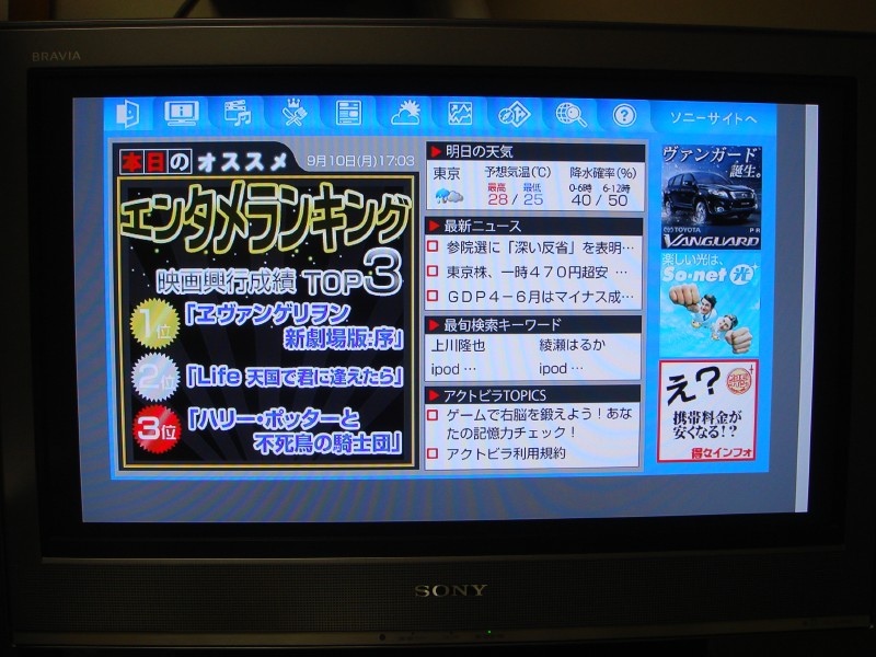 内容についてはどうだろう。ソニーが「この機能でテレビとネットのながら視聴を実現させた」と説明するように、確かに小窓でネットの情報がチェックできるのは便利だ。ニュースやコネタなどはNTTドコモのi.ch(アイチャンネル)のようで、「テレビを見ながら最新の情報をチェックし続けたい」という人に向いている。