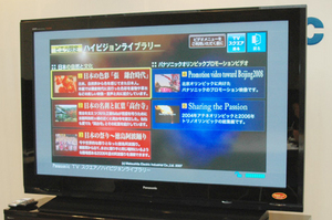 大井氏:PZ750SKシリーズには2種類のネットワーク機能が搭載されています。一つはインターネットを使ったビデオ・オン・デマンドサービスの「アクトビラ ビデオ・フル」にいち早く対応しました。もう一つはドアホンの映像をテレビに表示する「どこでもドアホン」機能です。「アクトビラ ビデオ・フル」は、テレビ専用のインターネットサービスである“アクトビラ”を使ったHD画質の映像配信サービスです。有料と無料のコンテンツがありますが、テレビの画面操作だけで映画やライブなど好きなときに好きなだけ楽しめます。高圧縮技術MPEG-AVC/H.264を使っていますので、50V型を超える大画面で見ても美しいハイビジョン映像が楽しめます。