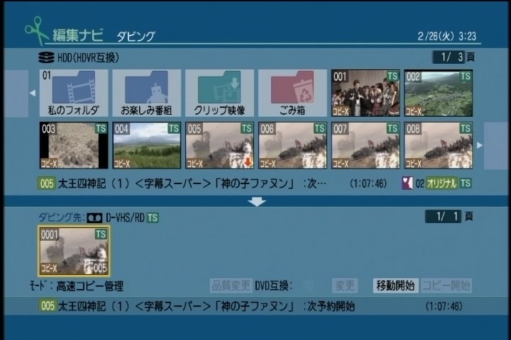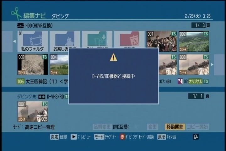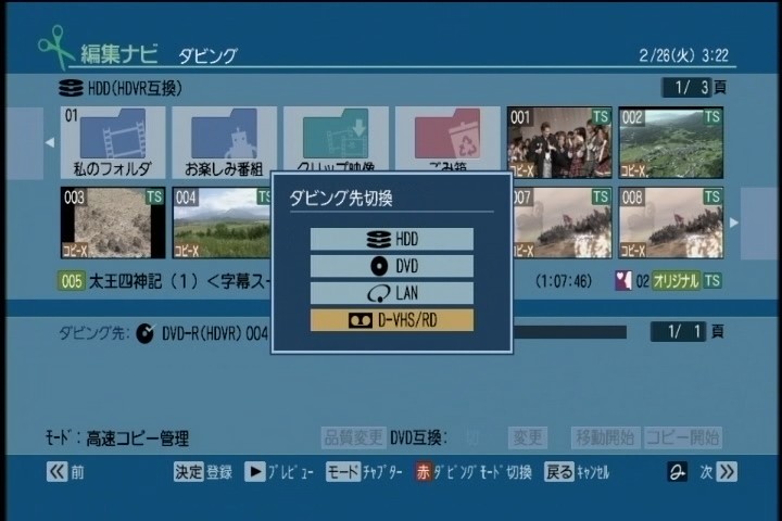 一手間かかるのがアナログ放送だ。アナログ放送はコピーガードがかかっていないので、i.Link接続を使ってそのままBDレコーダーにダビングができそうだが、実はできない。i.Linkでのムーブはデジタル放送のTS(DR)に限られており、それ以外の動画の移動やダビングには使えないのだ。