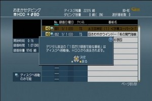 RDシリーズに保存したハイビジョン番組はHDD上にあるならBDレコーダーに移動できる。デジタル放送の番組をHD DVDに保存した場合は、残念ながら移動方法はない。 ※コピーガード導入前にBS-Hiのハイビジョン番組をD-VHS等に録画しており、それをHD DVDメディアに保存していた場合。 |