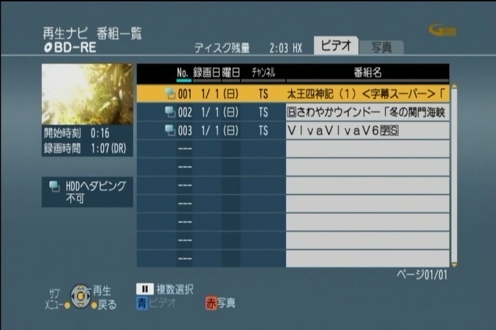 | | コピーワンス番組 | コピーフリーHD映像 ※ |