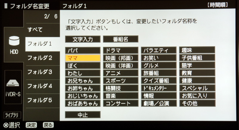 レコーダーテレビはカンタンに録画できるので、ちょっと使っただけで、かなりの録画番組が貯まるはずだ。とくに家族で使っていると、誰がどの番組を録画したかわからなくなることも多い。そんな時に便利なのがフォルダー機能だ。