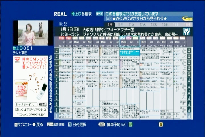 「発掘」は録画・視聴した番組の内容や出演者を解析し、関連した番組を見つけて録画する。筆者はこの「発掘」機能に助けられている。先日ミュージシャンの忌野清志郎氏やマイケル・ジャクソン氏が亡くなったが、これにともない追悼番組が放送された。いくつかはチェックして録画・視聴できたのだが、そのあと不意の追悼番組があり、これを見事に「発掘」して録画できた。ソニーの「x-おまかせ・まる録」だと、わざわざキーワードを入力しないと自動録画はされないが、REALなら意識せずに面白そうな番組を見つけてくれる。ただし残念ながらキーワードによる自動録画はできないので、ソニーの「x-おまかせ・まる録」搭載機をいっしょに使うこと、見逃しが激減する。