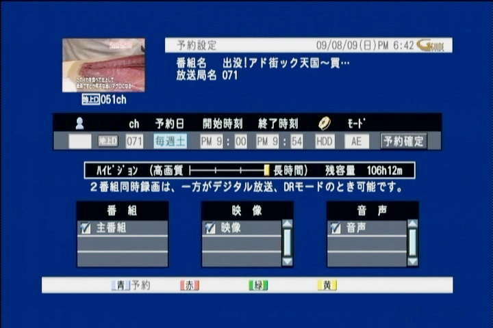 番組予約は「予約する」ボタンを押すと電子番組表が表示され、録画したい番組を選ぶだけで予約が完了してしまう。レコーダーに詳しくない人なら「あらカンタン!」で、済むだろうが、Phile-webの読者や筆者など、レコーダーを使い込んでいるユーザーにとっては、違和感を感じる操作のショートカットかもしれない。
