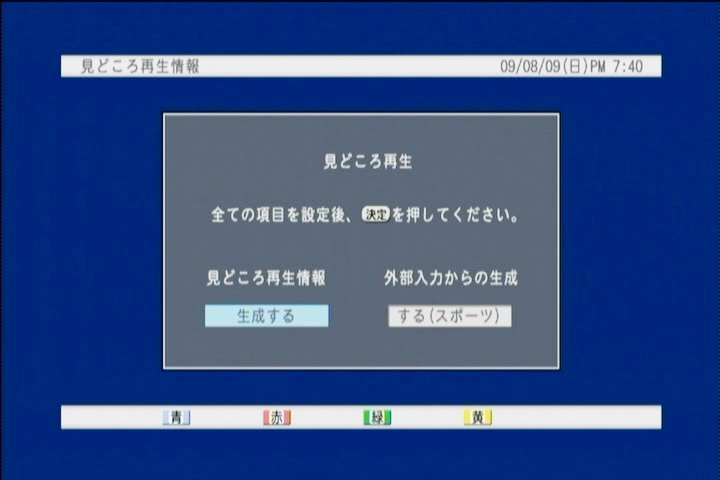 本機には従来機から引き継いだ便利な再生機能がある。番組とCMを自動分割する「オートカットi」は、設定により、録画番組の本編だけ、CMだけを連続で再生できる。再生時にはこの「オートカットi」の使用について選択できる。さらに「見どころ再生」機能を使えば、スポーツ番組と音楽番組で見どころをハイライト再生できる。「見どころ再生(スポーツ)」は、歓声などを解析し名場面をピックアップ。「見どころ再生(音楽)」は音楽番組で司会部分を飛ばして、楽曲の演奏部分のみを連続再生できる。「オートカットi」と「見どころ再生」で作成したハイライトシーンはそのまま光ディスクにダビングもできる。