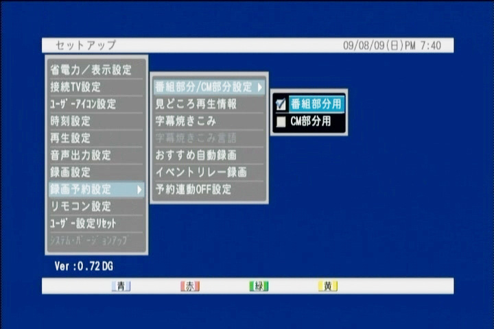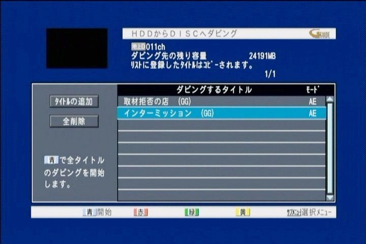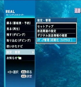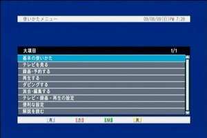 できればリモコンの十時操作ボタンがメニュー表示以外の時は空いているのだから、ここにレコーダーのチャンネルを割り振ってもよかったのではないだろうか。インターフェースの玄関とも言える「メニューボタン(スタートボタン)」もフタの中だ。このボタンこそ何をさておいても表面に配置すべきではないかと感じた。本機の場合スタートボタンが重要で、ディスクメディアのファイナライズ操作は、スタートボタンから選ぶ必要がある。また前述した予約確認にも使用する。その他に録画番組の視聴に欠かせないスキップとスキップバックボタンもフタの中だ。代わりにトレイの開閉ボタンが表面部に配置されていることも不便に感じた。