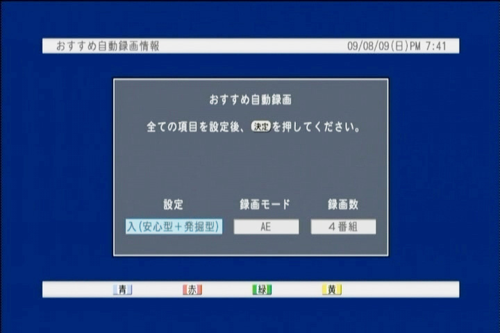 本機には「おすすめ自動録画」機能があり、一度録画して視聴した番組は自動的に次回以降も録画する「安心」モードがあるので、毎週予約をしなくても次回以降の番組を録画できる“可能性”はある。ただし任意の予約が「安心」予約と重なってしまうと、「安心」の番組は録画されない。確実に録画するにはやはり毎週予約は欠かせないのだ。