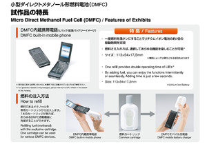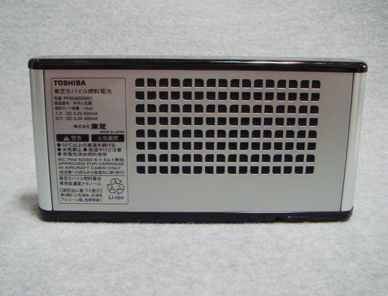 気になるスタミナだが、東芝の発表では1回の充電で、電池容量800mA程度の携帯電話を2回充電できるという。また1本の燃料カートリッジを使えば、携帯電話に7回の充電ができる仕様となっている。