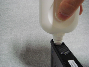 上野氏:やはり燃料カートリッジまわりのことですね。高濃度メタノールは可燃物ですから、これを安全に持ち運べるように設計することが大変でした。ボトル本体は二重構造になっていて、破損しづらくなっています。小さなお子さんが誤って飲んだりしないように、押しながら回さないと開かないロック式のキャップを採用しています。ノズルにはロック機構があり、Dynarioとボトルを直角にセットしないと、メタノール燃料液が出ない仕組みになっています。Dynarioは高濃度のメタノール専用液を使う仕様となっているので、誤って他のメタノールが入れられないように、専用ボトル以外では燃料を充填できない構造になっています。
