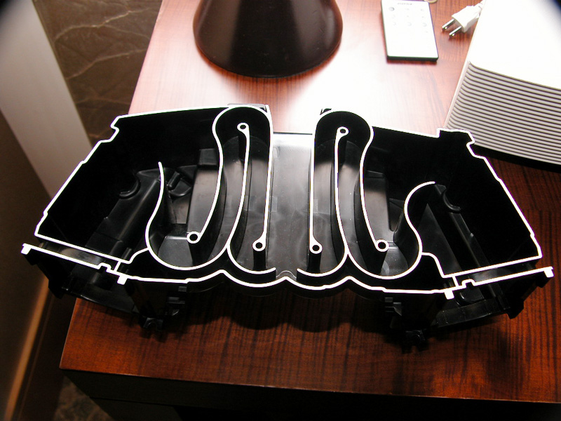| ▲BOSE独自の「アコースティック・ウェーブガイド・テクノロジー」を進化させた「デュアルウェーブガイド」を採用。音の通り道となるスペースを60%拡大させたことにより、前モデルより1/2低い音声の表現が可能になった |
