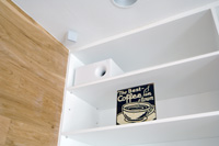 「FreeSpace 3-4(W)」のコンポーネントが、店内の白い天井とブックシェルフにさりげなく溶け込む |