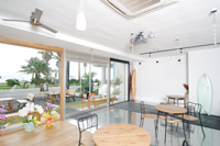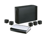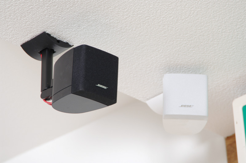 昼間の明るい陽が射し込む時間帯には、真白なスピーカーシステム「FreeSpace 3-4(W)」から涼しげなBGMを再生し、お店のスタッフが持ち寄った音楽を詰め込んだiPodをつないで、心地よくリラックスできる空間が演出されます。そしてシアター用スペースには、5.1chサラウンドシステム「Lifestyle