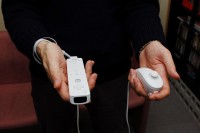 Sportsの「ボクシング」では、Wiiリモコン(左)と、拡張リモコンのヌンチャク(右)を使ってプレイする |