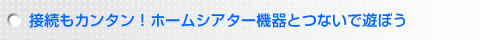「ゴルフ」では、ボールがフェアウェイやグリーンを、そしてラフやバンカー、ウォーターハザードといった自然障害物を移動する際に発する音のリアルな表現が印象に残る。コースによって変わる風音、波の音など、ディティールに富んだサラウンド再生も楽しみたい。大画面に映し出される雄大なコースのグラフィックと合わせて、まるで屋外でプレイしているような感覚に包まれてしまった。ゲーム自体もクラブを振るスイングのモーションにWiiリモコンがリアルに反応するため、本物のゴルフ・プレイヤーにも納得の面白さがある。
