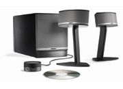 5」だ。ボーズ独自のデコーダー「Bose Digital」とデジタルサラウンドプロセッサー「TureSpace」により、デスクトップ環境程度の距離で再生したときに、ベストな音空間を再現するように最適化されている。“スーパーフロントサラウンド”の技術により、2つのフロントスピーカーと重低音再生を担うベースモジュールだけで、ニアフィールド再生でリスナーの全身を包み込むような空間印象を作り出す。パソコンでDVDやストリーミング動画を楽しむのに最適なシステムだ。