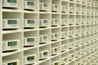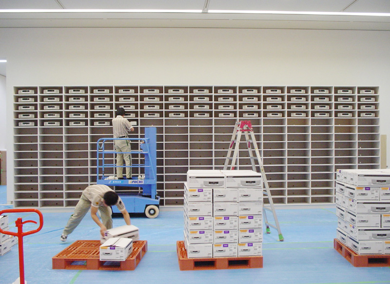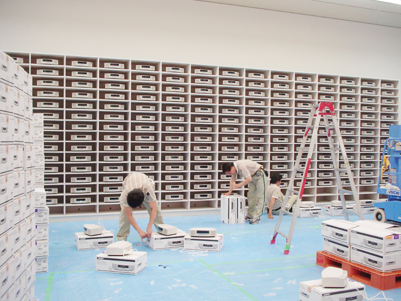 Music Systemを収納するための、縦15マス×横15マスの巨大なラックが展示室に運び込まれた |