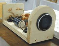 | 準備に余念のない島田氏(左) 島田氏制作のトゥイーター(右) |