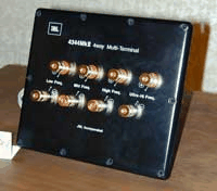 4組の大型ターミナルは心中切削加工の一体型ポストに24金メッキを施した高信頼型。Yラグやバナナプラグの接続が可能になっている。(季刊・オーディオアクセサリー編集部)