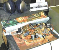 ●写真右:泣Cーエクスプロは開発途中のヘッドホンアンプを展示し、試聴デモも実施。(季刊・オーディオアクセサリー編集部)