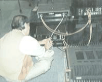 | CD-Rのデジタルケーブルを交換する神崎氏 |
