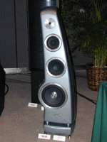 オーディオコーナーでひときわ目を引くのは、タグマクラーレンのF1−R1Aだ。大きく湾曲した独特のフォルムは完全に左右対称で、流れるような美しさがある。エンクロージャー内部は隔壁を隔てて、ウーファー、アッパーウーファー、ミッドレンジの3つに分かれているが、外見からはその様子はうかがうことができない。