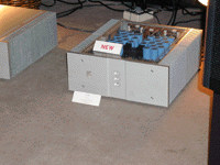 このスピーカーをドライブしていたアンプはエアーの製品。プリアンプK-1xとパワーアンプのV-1xに、話題のDVDプレーヤーD1を組み合わせて鳴らしている。このブースに展示してあるエアーの製品は内部を見られる特別バージョンで、特にV-1xは前モデルV-1に比べて容量を2倍に増やした膨大な電解コンデンサーが偉容を見せている。