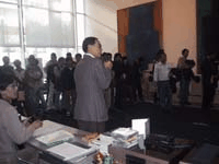 長岡鉄男先生設計のオリジナルスピーカー20数台が所狭しと並べられ、順々に音を出し、モデルの解説を加えつつ、オークションにかけられていく。音出しには、ラックス(株)、アキュフェーズ(株)両社のご協力で組まれた試聴システムを使ったのだが、なんと最初に流されたのは、長岡鉄男氏の「肉声」だった。16年前の講演模様を収録したテープをCD-Rにコピーしたものだが、若々しい先生の喋りがリアルに会場に響き渡る。