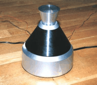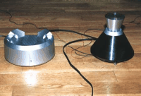 そして最大の特徴は、下の部分のトランス部と上の回路部を分離して使用できるという点。分離した回路部には、3点支持のスパイク脚が付いている。