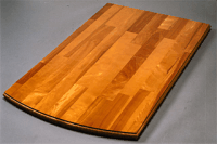 なお、通常用の製品では木の目を平行に積層し、よじれが防止されている。