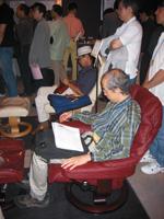 実際に座ってみたが、体にかかる圧力に偏りがなく、僕は腰に弱点があるのだが、これなら長時間座っていられそうな感じである。輸入家具というと高価なイメージがあるが、廉価な機種は中級CDプレーヤー相当なので僕らでも手が届きそうだ。最近特にイスの重要性を感じているので、是非欲しいと思った次第。イスはホームシアターの重要なコンポなのだ。(市川二朗)