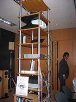 人目を惹くのは天井近くまで高くそびえるクアドラスパイアのラックだ。こんなに高くして大丈夫かいなと要らぬ心配をしてしまうが、ちょっと触れた感じでは意外としっかりしている。