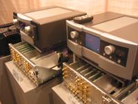 | オーディオプロセッサー部と、モニターの付いたビデオプロセッサー部のセパレート型構成のマークレヴィンソン、AVコントロールセンターNo.40L(左)。ハルクロのプリアンプdm10、ステレオパワーアンプdm38(右)。 |