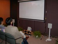 もうひとつの部屋では、クラシック・シリーズの5.1chシステムを再生。DVDプレーヤー、クラシック・ムービーと新しく開発された小型sピーカーとの組み合わせで、映画を主体に音楽ソースも交えながらサラウンドが堪能できる。ハイエンド・エントリーという位置付けである。(井上千岳)