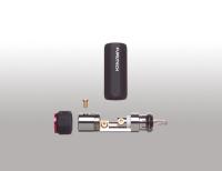 ・FP-106は、センターピンには燐青銅に新たなロジウムメッキを施したワイヤー形状を採用、安定した接触面を確保、アース側は8分割のコレット・チャック式ロック機構を踏襲し信頼性を大きく確保している。また、使い勝手において、加工性と音質向上の追究により、コールド線の取付部にネジによる構造を採用し、新たに発売開始している。両機種共に−196゜Cでの、超低温処理を行っている。