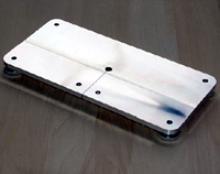 本製品は、アルミ合金「A7075」10mm厚の単板を使用し、わざとハイスピード広帯域共振をしやすくなるよう設計されている。センターに丸穴をあけ、単手方向より穴に向かって0.6mm 幅スリット加工をすることで、エネルギー移動のしやすさを追求している。床からの不要振動は四隅の特殊構造ねじ込み脚を通して素早くボードにアースする構成となっている。