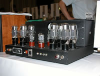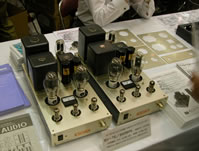 | <左>イーディオが展示するモノブロック真空管OTLアンプ「M60MK2.2」 <右>サン・オーディオ、モノラルパワーアンプキット「SV-TE/300BPX」 |