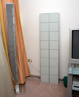 ユニットの位置をずらしたコレ(写真左)も位相を揃えるということなんだろうが、聴いてみたら狂いまくっていた。名前のユニークな440Hzという名のスピーカーは、440Hzの音しか出ないということではなさそうだ。その証拠に、平面振動版のサブウーファーまで用意されていた。