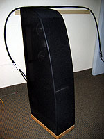 ●米国カリフォルニア州のアンソニーギャロの「目玉スピーカー」は日本でも大きな話題となっている。CESの同社ブースではこの「目玉」を2つに大きな円柱状のウ-ファーを加えた3ウェイスピーカー「Reference3」がが試聴できた。全体がサランネット状に囲まれているため、遠くからは良く見えないが、薄くユニット構成が見えるようになっている。音質に関してもサイズ以上の低域と、繊細な高域を楽しむことができる。まさにハイエンドスピーカーである。