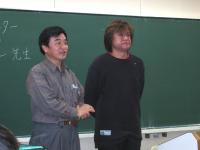 | 林正儀氏と滝口氏(左)、滝口氏の授業風景(右) |