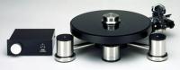 ターンテーブルはガラスとMDFによる二層構造で、クランピングシステムとの組み合わせによりレコードの振動モードとターンテーブルの振動モードの共振を無くし、ターンテーブルによる色づけを防止する。