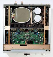電源部は、出力段と電圧増幅段をトランス巻線段階から分離独立。整流用のコンデンサーには低インピーダンス電極箔を採用した大容量高音質電解コンデンサーと周波数特性の異なる高音質コンデンサーを組合せ、高音質化を図っている。また、整流素子には低損失、低ノイズ、ハイスピードのショットキーバリアダイオードを採用した。