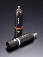 ロジウムメッキ仕上げのハイエンドRCAピンプラグ。センターピンには燐青銅に非磁気性ロジウムメッキを施したワイヤ−形状を採用、適切なバネ圧を与え安定した接触面積を確保し、アース側にはコレット・チャック機構を踏襲し信頼性を高めた。