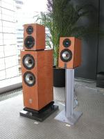 昨年のブースから全く様変わりしていて驚いたのがスキャンテックである。もちろんイメディアやライラ、アマゾン、コニサー、オーディオフィジックなどの定番商品は展示されているのだが、まず、全く新しい顔つきのスピーカーが登場したことが目を引くせいであろう。