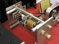 一方「真空管アンプテクノフェア」の方に出展していた社にも面白いものがいくつか見受けられた。美音技研という会社は2001年創業の若い社だが、なかなか意欲的な製品作りを行っているようだ。中でも目を引いたのは、真空管とFETを使った「ドライバアンプ」と称する製品だ。これ単体でもスピーカーが鳴らせるプリメインとして使えるが、本来は同社のパワーアンプをドライブするためのプリアンプとして使うものだという。