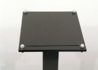 このスタンドの開発者はオーディオにこだわりを持った大のクラシック通で、B&Wの801を愛用とのこと。支柱の内部には特殊なフィンを刻み、ぎっしりと珪素を充填して定在波対策を施し、板と底板は異種金属の組み合わせで共振を防止している等、音質は従来のスピーカースタンドとは次元の異なる仕上がりを実現している。
