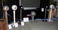 ECLIPSE TDはおなじみの卵形スピーカーをずらりと並べてのデモンストレーションを実施。大小合わせて7個が並ぶ姿は壮観であった。入り口にはカットモデルを展示し、技術力をアピールしていた。