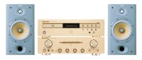 Music Dialog Platinum Preciousは、スピーカーにB&Wのブックシェルフスピーカー「XT2」を採用した。プリメインアンプ「PM8001」とSACDプレーヤー「SA8001」の新色シルバーを組み合わせ、デザインマッチングにも魅力を打ち出している。